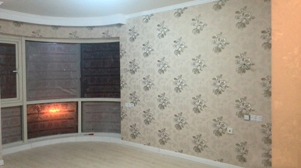 主卧背景!后面特意跟师傅说,窗子上方窗帘盒的地方也用背景墙纸,不过估计以后窗帘一拉,啥也看不到!