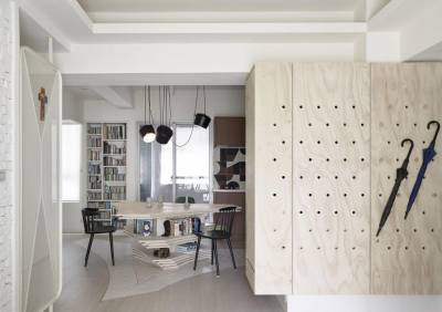 近年来,洞洞板成为许多DIY达人的心头好,一人施工即刻完成,还能随时变换造型。不过,除了手拿自己的小东西,还有以下10种意想不到的巧思装潢手法!不管是轻盈的帽子收纳,到颇具重量的脚踏车放置,都能收的漂亮有型!1.鞋柜门两种应用,打造雨伞栖身之地!设计师在收纳柜门打上洞口,化身大型木质洞洞板!巧用柜体的高度,收挂雨伞,斜着摆,直着挂,都能形塑与众不同的风格。下雨时,醒目的摆放,具有提醒居住者功能;洞洞板的设计还可以让柜体内的收纳品保持通风,不易产生异味!