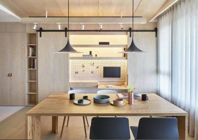 8.最具风格开放式书房,连电脑也变身装置艺术!从没想过电脑也能与洞洞板结合,将荧幕安装置壁面,与照片、小收纳物品成为展示墙。而面向客厅的电脑荧幕,平时待机时,还可以选用幻灯投影片放置喜爱的影音、个人照片,为生活空间增添更多装饰趣味。
