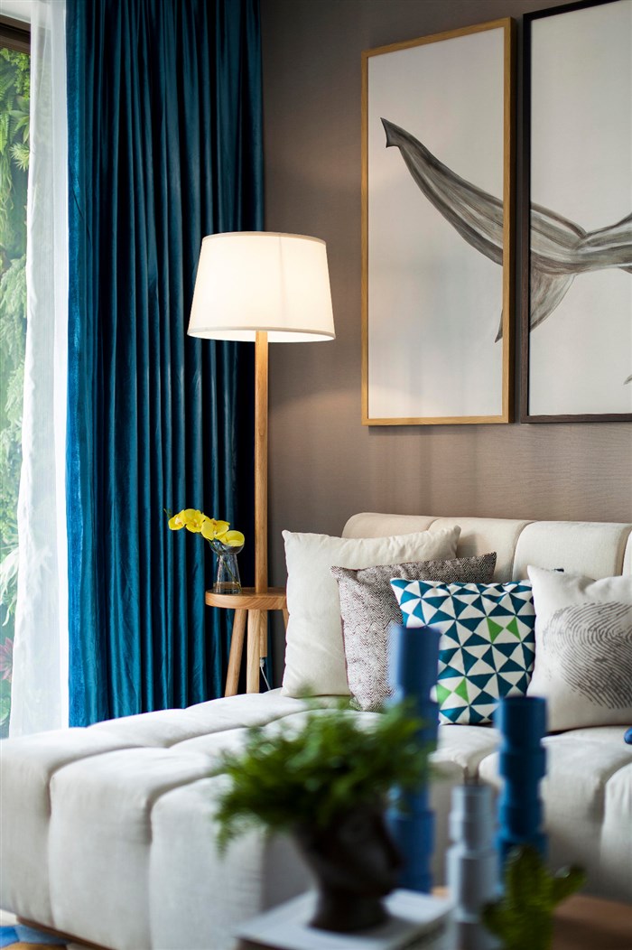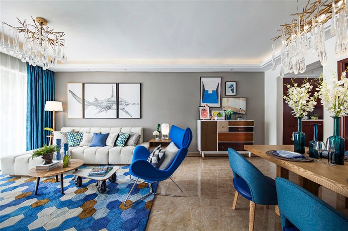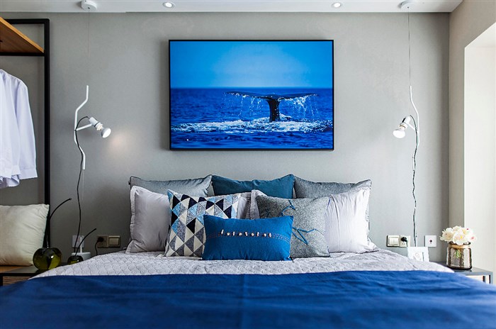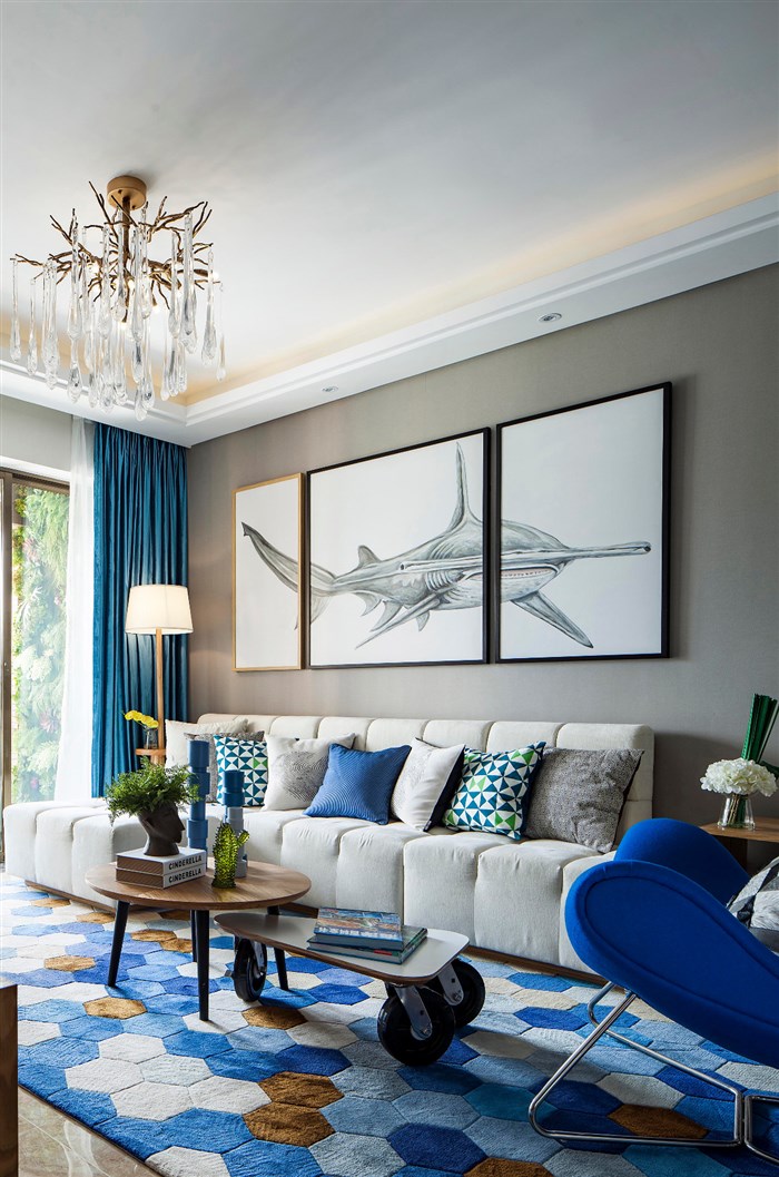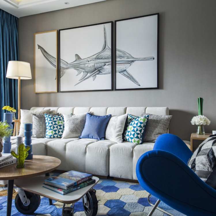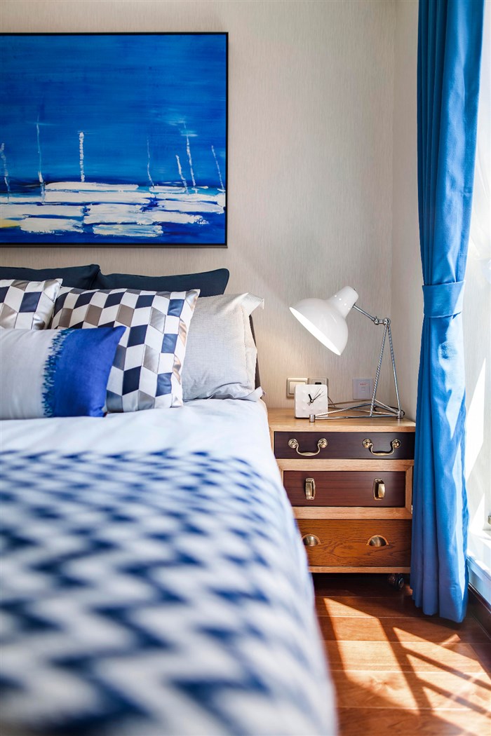 【方界设计作品】89㎡现代-静谧幽蓝项目名称:深圳 健康花城项目地址:广东 深圳设计公司:深圳方界设计顾问有限公司设计师:田婧婧面积:89平米完成时间:2016年那是海鸥 | 飞过蓝色天空| 它把那钢筋水泥全都叼走 | 那是海风 | 吹过绿色树丛 | 它把那公路上的阻碍 | 全都清空| 田边的农夫正在 | 插秧播种 | 我摇下车窗| 挥别了水牛 | 耳边的音乐也在反覆播送。用海洋蓝和米白色为主基调,加以原木色配浅灰色装饰着整个空间。简洁带肌理的壁纸,让空间展现出海洋蓝的魄力和对大自然向往的自由。清新的色彩搭配,不带雕花、纹饰的家具,简洁具功能化更贴近自然。从纹理到颜色都给人一种舒适的人情味,北欧现代的记忆仿佛真实的印刻在每块木板上面。