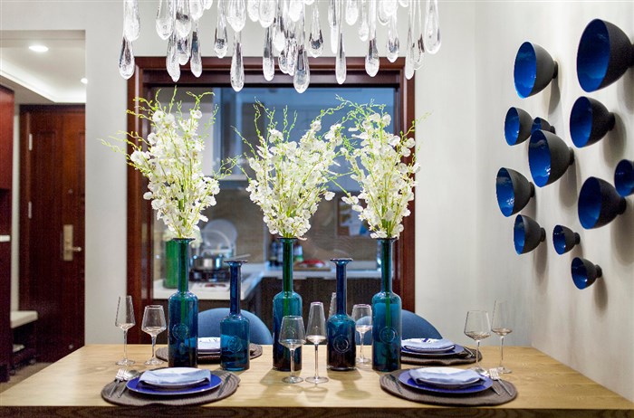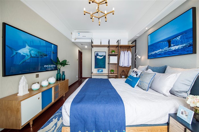 将海洋元素融入到主题空间中,均以简洁的造型、纯洁的质地、精细的工艺相互融合在空间中一一展开。搭配着做工精细的灯饰加以点缀。将艺术与实用结合起来形成了一种更舒适,更富有人情味的设计风格。