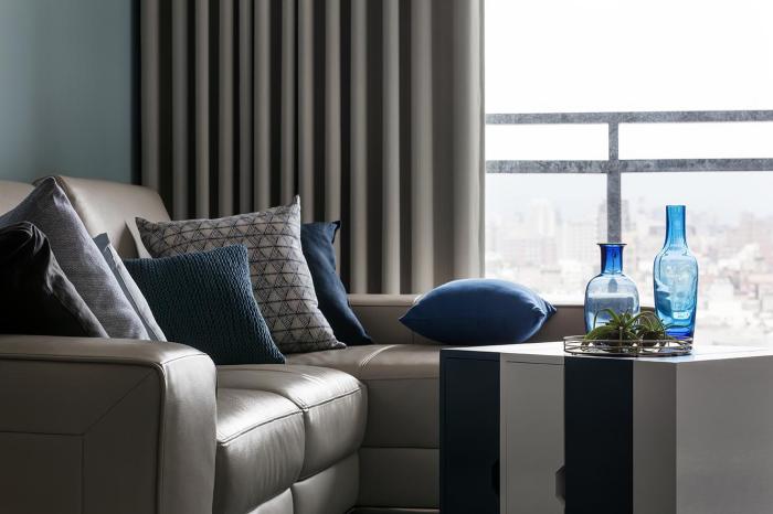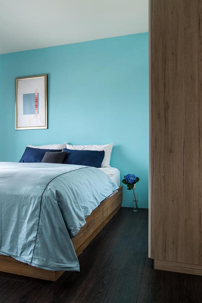 主卧室采用屋主喜好的蓝色进行配色,但并非普通的蓝色,而是柔和舒适的土耳其蓝,不仅带给人们放松的心情,更象征一种远离尘嚣的心境。