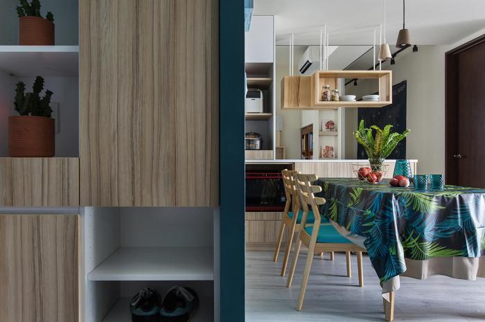 从玄关看进屋内,无法一眼望尽;但也不会一无所获。多元功能性的橱柜,也为整个家中增添趣味感。