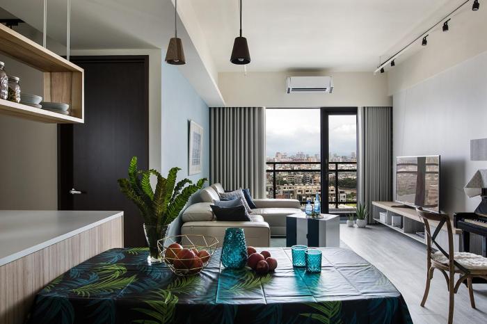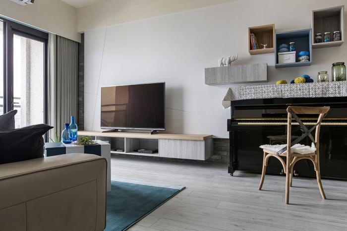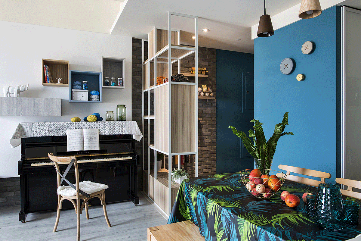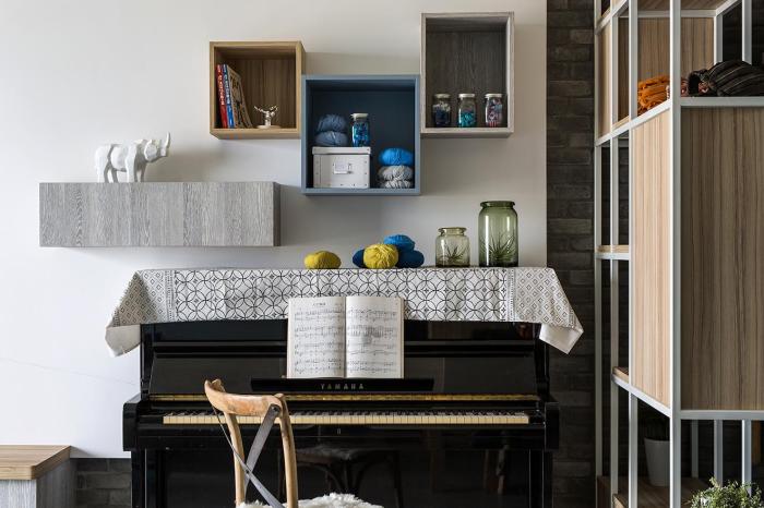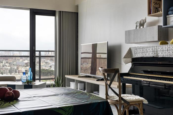 客厅前方摆放一座钢琴,伴随着钢琴声飞扬,音符仿佛赋予了周遭事物生意,令人心情畅快。