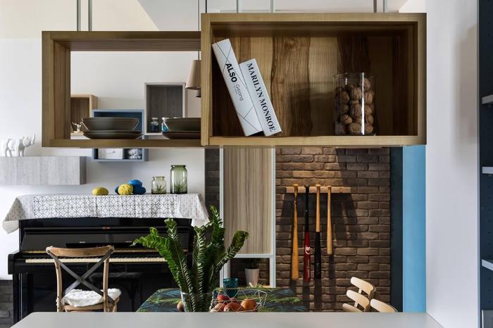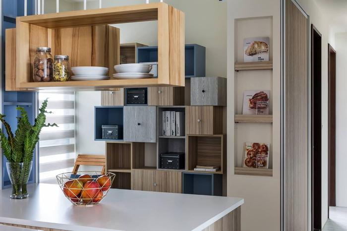 高低的展示柜,方块形体能够用来收纳高低的摆饰品,让收纳空间灵活运用不受限制。