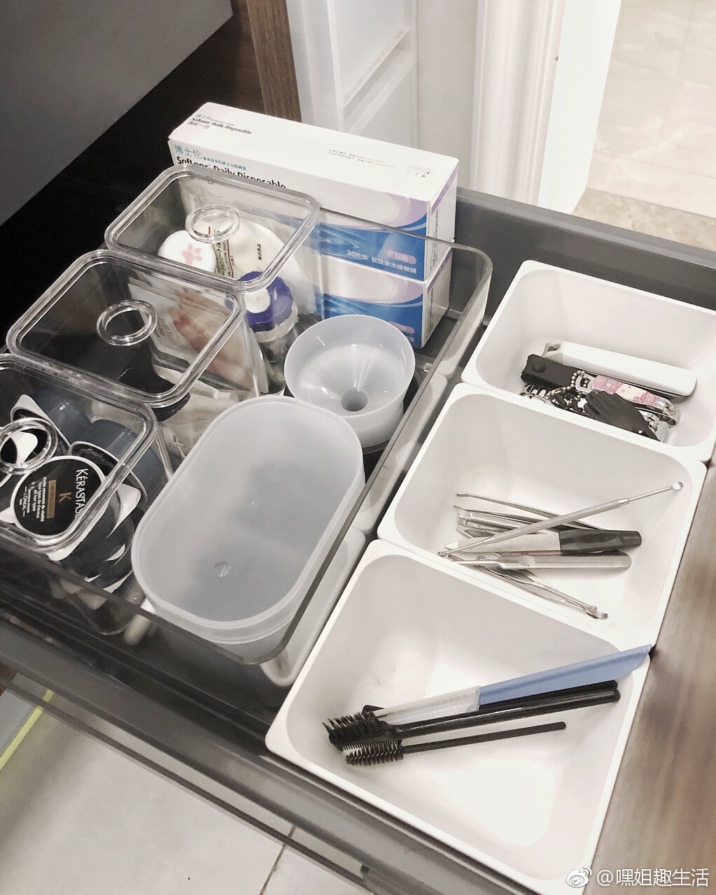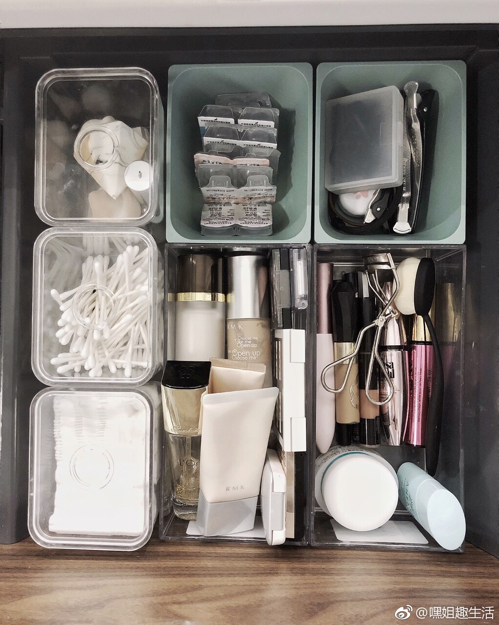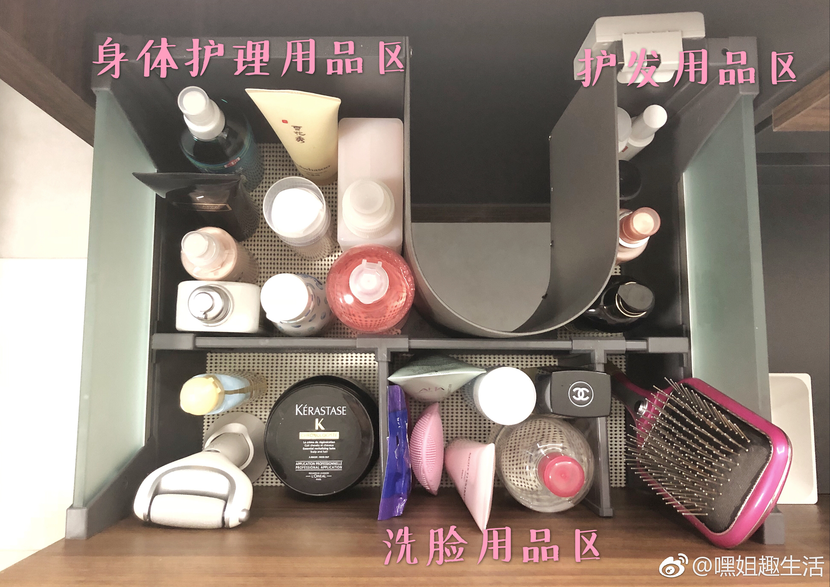 浴室小物品收纳(一)浴室要容易清洁,台面就不能有太多东西。我一般放两种:1⃣️一天要用上2次的高频物品2⃣️不摆出来就会忘记使用的物品其余全部隐藏收纳。卫生间比较潮湿,是不适合放化妆品的,但为了早上能快点出门,我把最常用的几件化妆品都收纳在浴室。尽量买小件装的,3-6个月就更换一批,防止细菌滋生。浴室收纳一篇PO不完,各位小仙女想看的话多多给我评论呀~我才有动力写下去