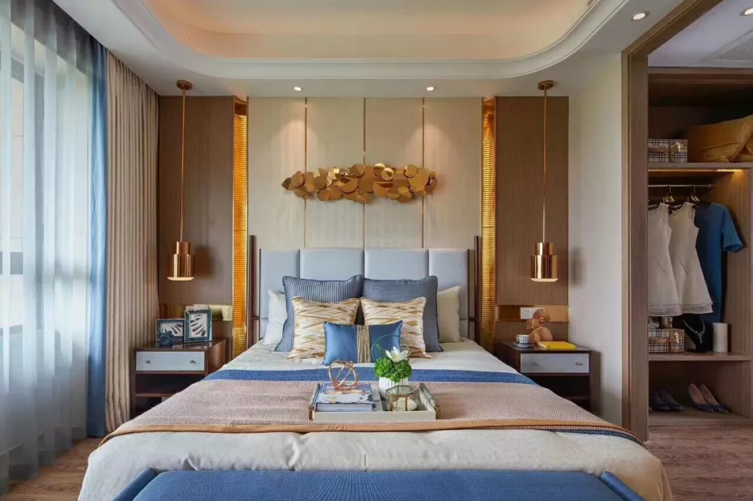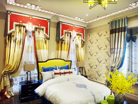 在卧室中窗帘起着重要的作用,不仅能遮挡阳光,同时也能装饰整个空间