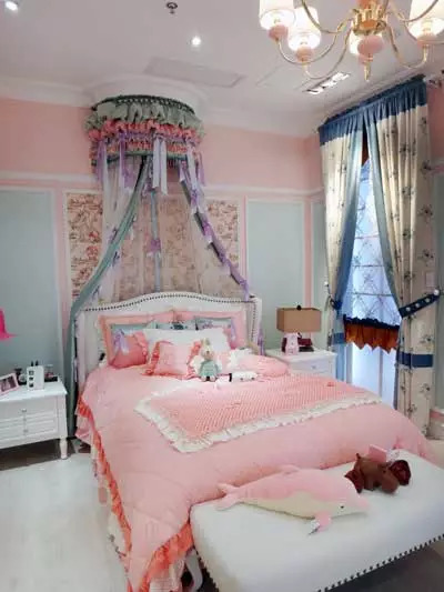 这个欧式的卧室在设计上就给人一种典雅的气息,而双层设计的窗帘就让整个卧室在不同的情况下都能呈现出不一样的典雅气息