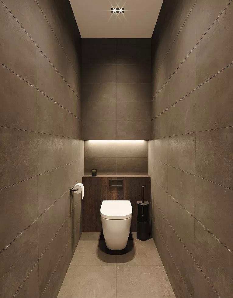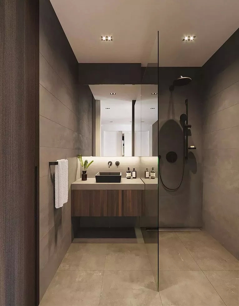 卫生间采用了混凝土砖块进行铺设,灯光照射下让整个卫生间质感更加厚重。