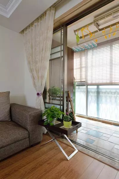 ▲玄关铺了素色地砖,搭配一个半墙高的鞋柜,客厅的脚凳沙发可临时充当换鞋凳,实用又方便。
