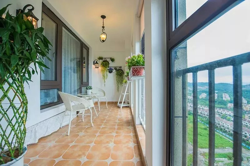 ▲阳台一角以及栏杆处都布置了绿植,在阳台悠闲地欣赏开阔的风景,写意与舒适满溢心头。