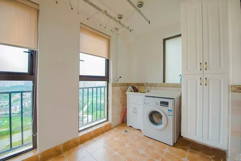 ▲空间充裕的情况下,选择洗手台+洗衣机+顶柜的组合,能让家务事简单轻松不少。