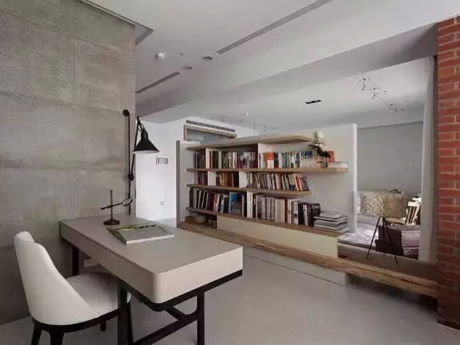 ▲ 电视背景墙的背面也是充分利用起来了,用木板隔开几个空间,书架问题轻松解决。海量优秀设公司,点击可免费申请设计!