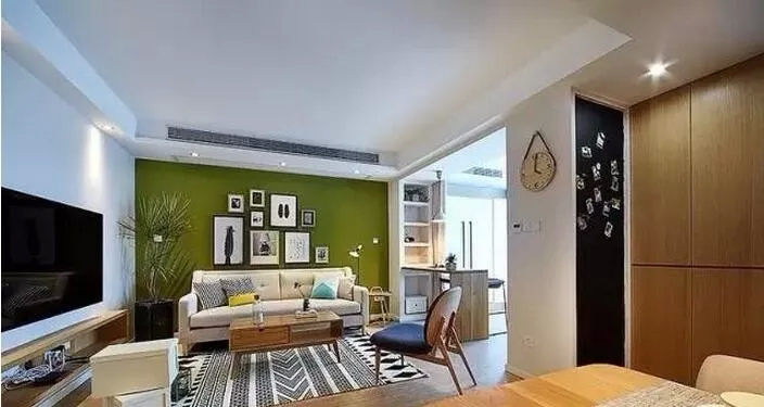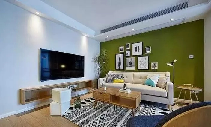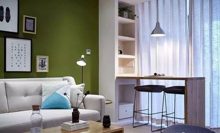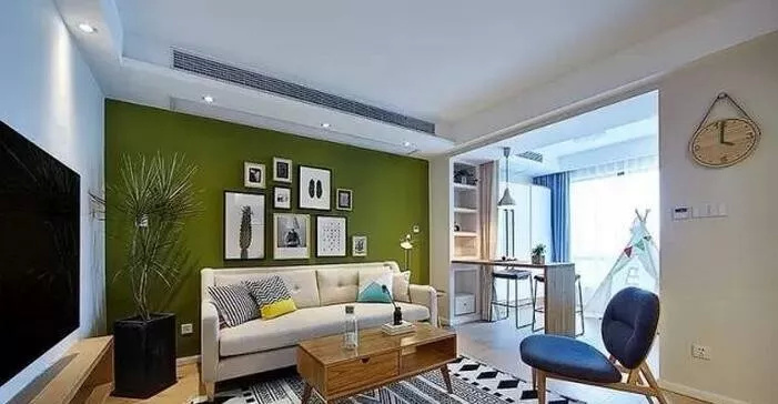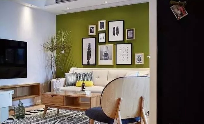 ▲ 沙发背景墙用清新的绿色和照片做装饰,非常漂亮,极具艺术性的环境给人最极致的视觉享受。