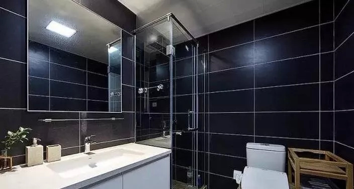 ▲ 黑色瓷砖墙壁搭配白色洗漱台,干练不显凌乱,大气显沉稳。