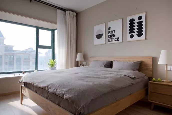 ▲作为让自己第二天满血复活的休息场所,布置自然要走心,米色墙面非常随和安然,原木床搭配浅灰色床品,让人忍不住身出亲近之感,只想躺在柔软的床上,一夜无梦到天亮。从卧室望向窗外的视野非常棒,清晨醒来还能看着窗外,发发懒,再惬意不过。