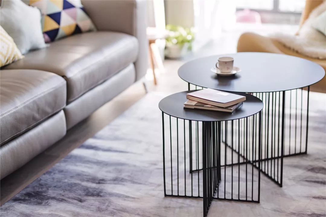 ▲一套镂空的简约大小茶几,提升了客厅空间的视觉张力。