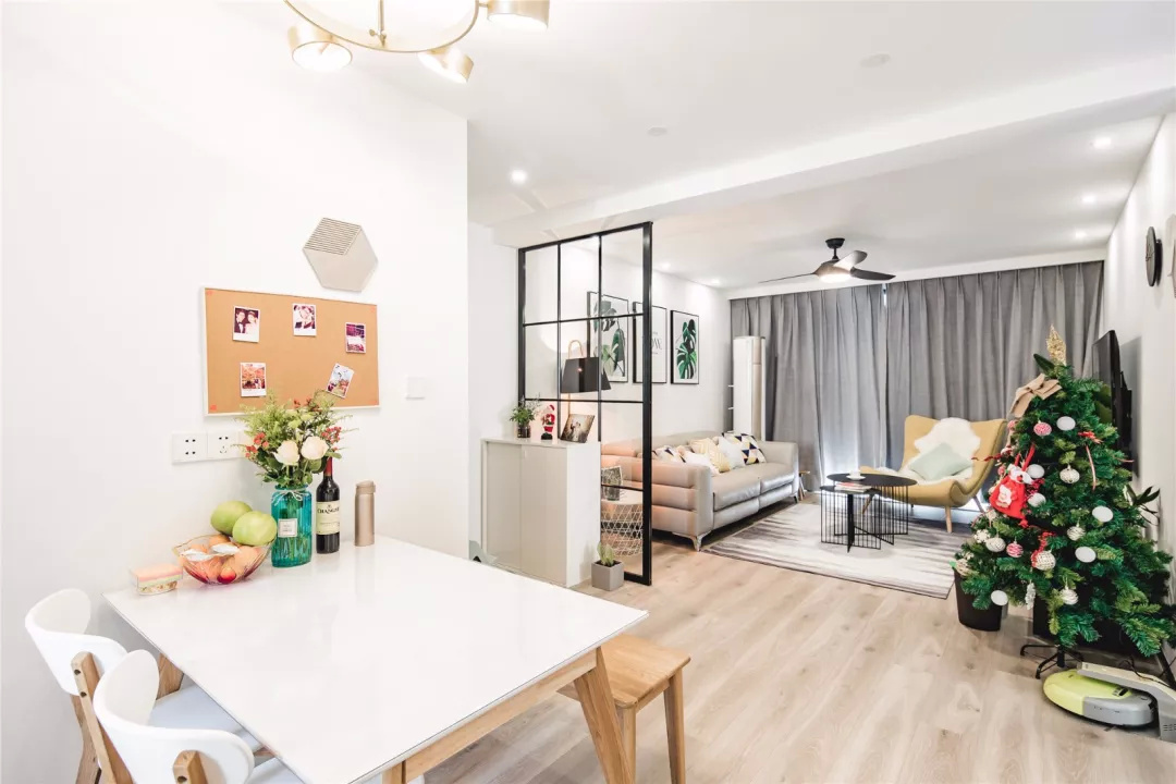 这套100㎡的装修案例,以北欧风格的轻松,结合上日式的清新惬意,在简单的白墙基础上,以点到即止的墙饰避免了枯燥空洞感,极力打造了一个充满舒适温情的居家空间。