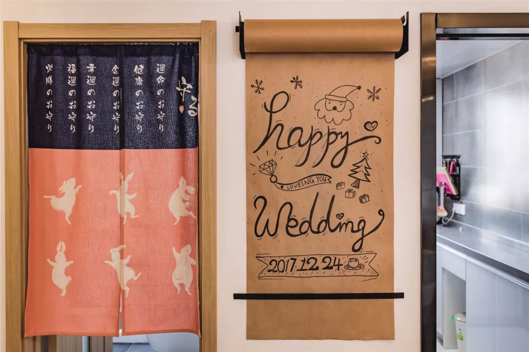 ▲中间的空白墙面,挂上一个结婚纪念日的绘画,慢慢的浪漫与惬意。