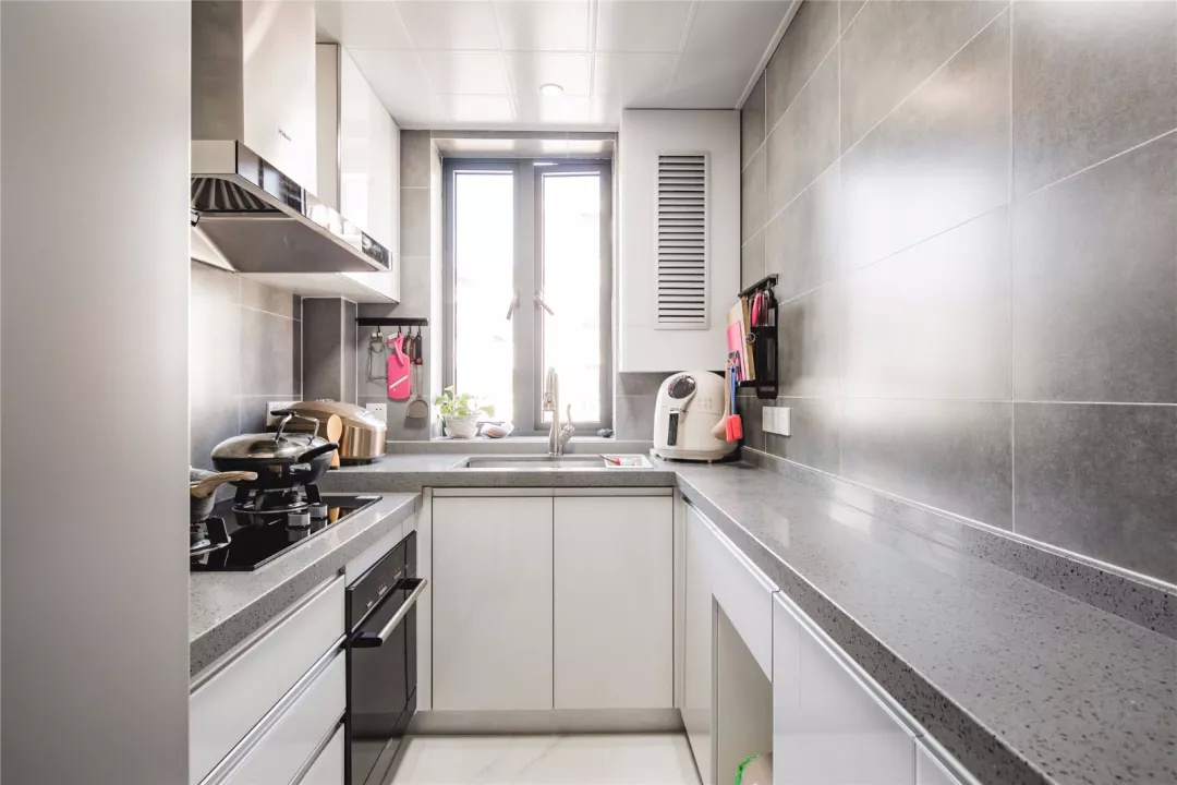▲U型的灰白配厨房布局,整体带来整洁大方的视觉美感。