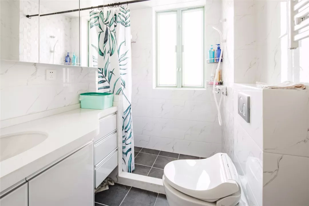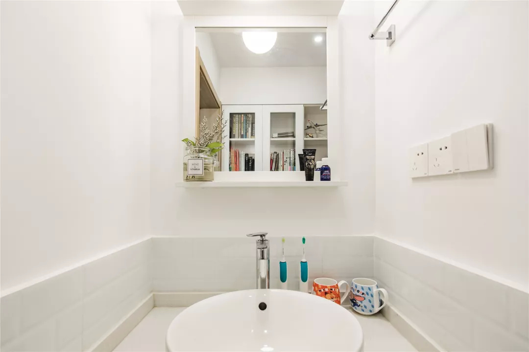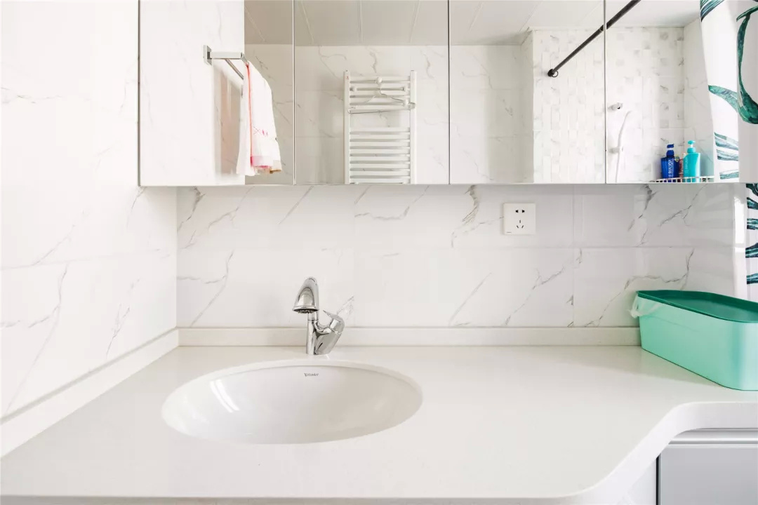 ▲额外划分出一个洗漱空间,墙面围了一圈小白砖,颇具精致文艺感。早上一家人的梳洗想必会很方便。