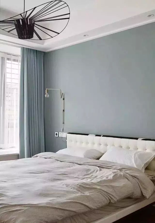 ▲主卧一派北欧风,大面积浅灰墙面,灰色床搭配白色床品,优雅的小飘窗,都是为了给人极致的睡眠享受,让人心情和神经得到放松。纯色系的空间更能让主卧把持着干净。