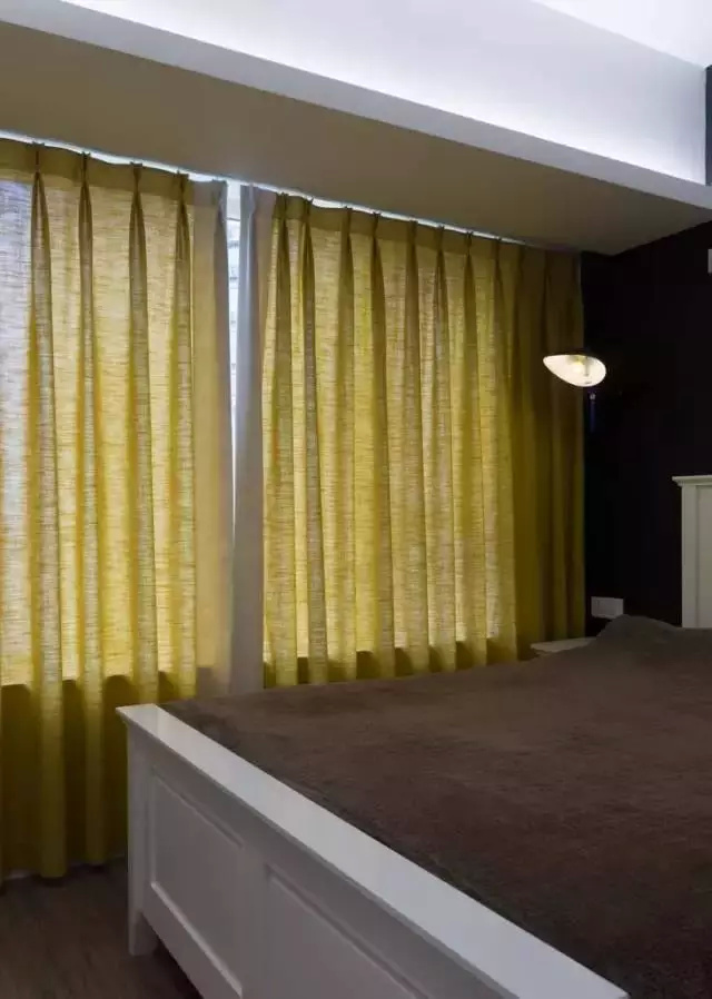 同样是黑白的主色调配上明黄色的窗帘,暖白的灯光显得干净利落。