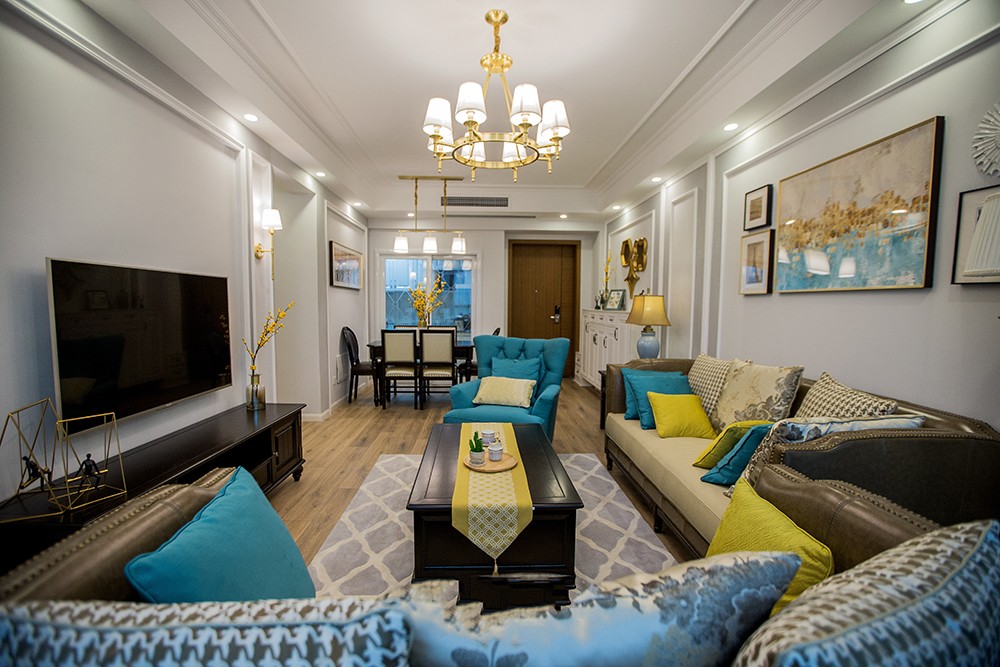 在我们家的施工过程是比较顺利的,因为他们的服务方式,报的很全,我定下公司之后就回去外地上班了,都是通过微信,电话,视频进行工程上的衔接关注,当然也会遇到一些问题,但是在整个服务团队中没有人相互推卸责任,都是第一时间做到解决,非常迅速,这样及时我整个施工过程中不曾在工地上,也不用费心,因为我有设计师,项目经理整体的打理,衔接,都非常淳朴敬业,让我非常放心。精致设计浅灰色系墙面、天花板、沙发与深色系的茶几、沙发后背墙相得益彰,赋予空间平衡之美。现代硬朗的线条结合传统美式优美的线框让空间更有层次感,浪漫又不失典雅。