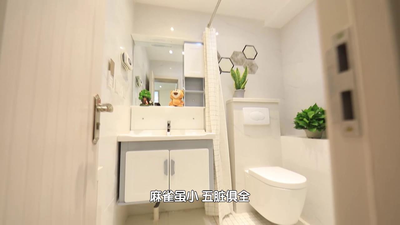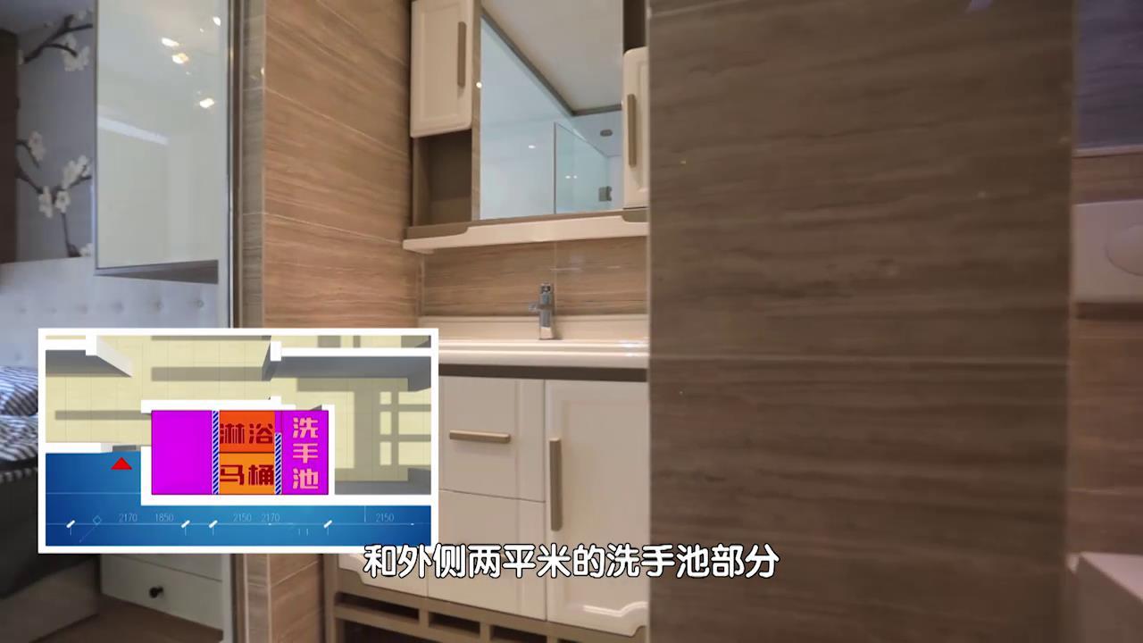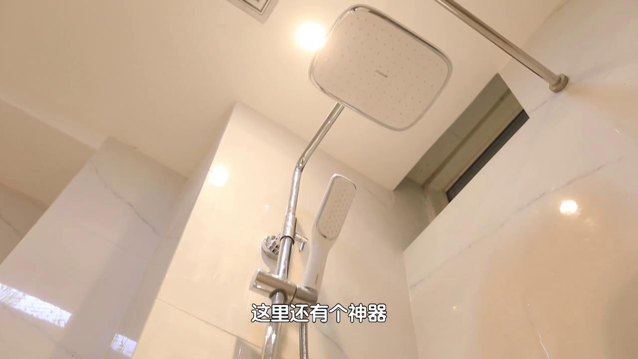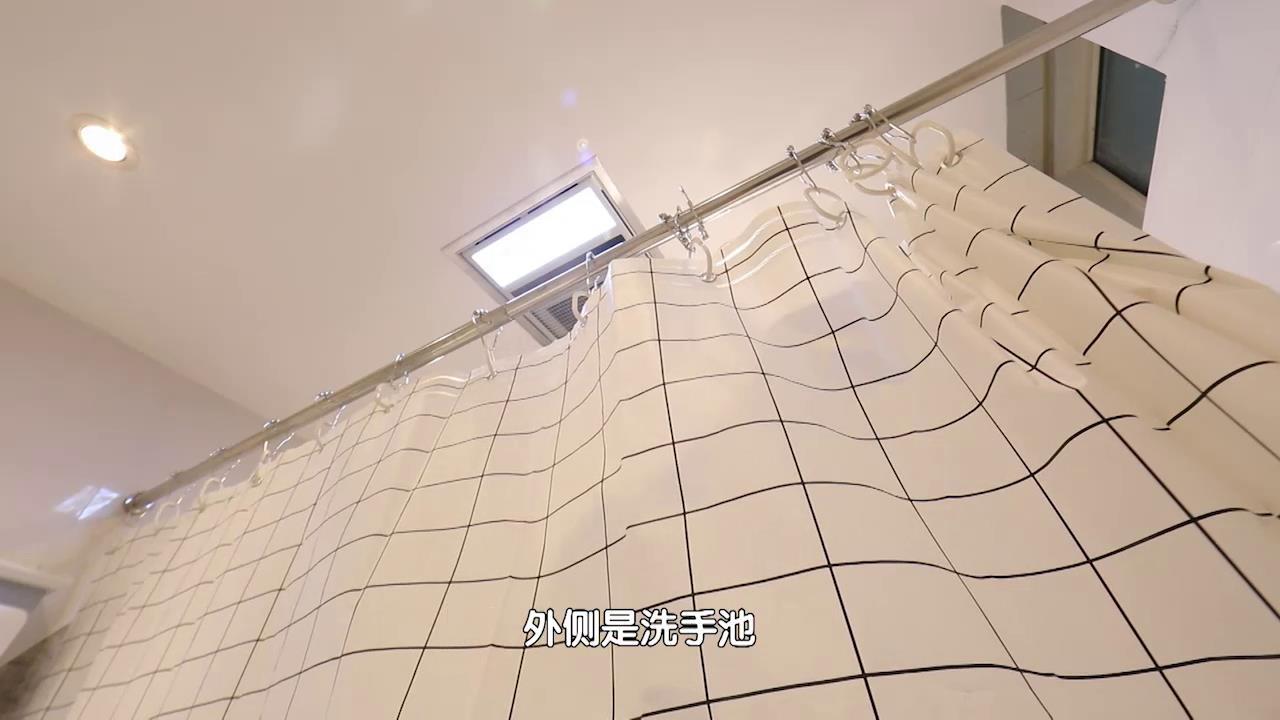 不过要说整个房间改变最大的,还是这个玻璃墙的卫生间。由于设计师将原有卫生间向主卧推了1米的距离,所以整个卫生间整整有4平米,而且细心的王勇还将卫生间划分为2平米的洗浴如厕部分,和外侧2平米的洗手池部分。原来细心的设计师为了方便王偲看孩子,在厕所也做了可折叠的宝宝椅。主卫改造圆满成功,可是另一侧的卫生间是否会变得很小呢?设计师将卫生间用一道浴帘隔成了干湿分离的两间,外侧是洗手池,内侧是淋浴和坐便,既简洁大方又便于清理。 暖暖的新家