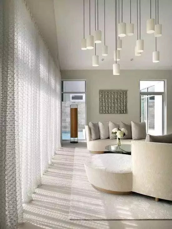 而客厅、书房、厨房等区域,则不必遮掩什么,可以选轻薄一些的窗帘