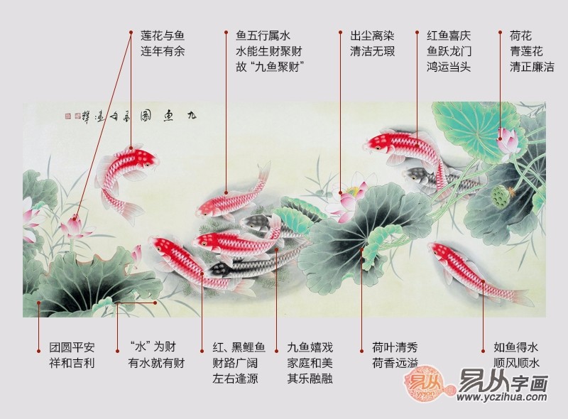 从古至今,中国人最喜欢吉祥画,将吉祥画挂在家里不仅是一种文化的象征,更是人们对未来的企盼,对美好的向往。九鱼图是传统的吉祥画,在家里挂九鱼图是中国人共同的选择。
