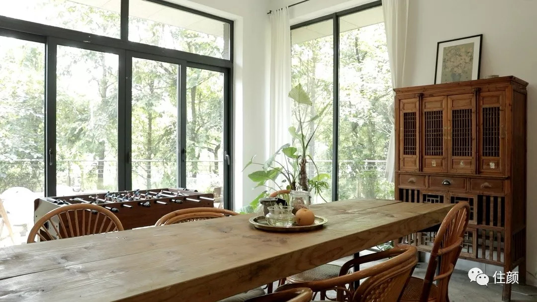 餐厅在厨房另一侧的靠窗处,漂亮的窗景和古朴的家具相得益彰,张欣然和朋友们围坐在一起吃饭聊天,一切都变得安静自然