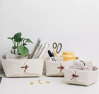 ▲ 毛毡收纳三件套边缘利落干净,一体成型,暖暖的毛毡材质,更能营造温馨氛围,保持空间整洁的同时,亦可装饰环境