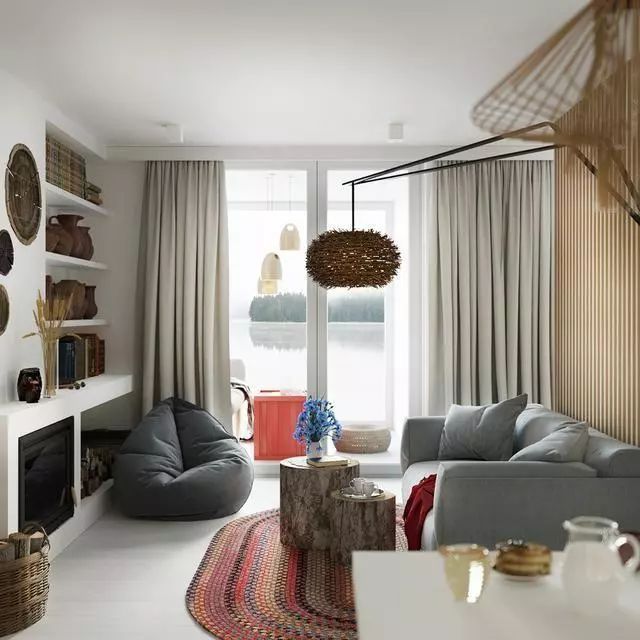 清新北欧风格的客厅,摆设着经典造型的北欧家具,当阳光穿过明亮的窗户洒进室内,被温柔的窗帘轻轻阻隔,霎那间,阳光脱去了炙热的外衣,照亮着空间的每一个角落,显得格外温柔