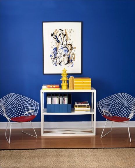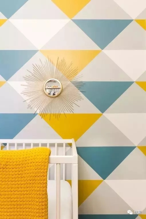 除此之外,这种黄蓝白相间色的几何图案刷在墙上,也是很好的选择,特别适用于儿童房