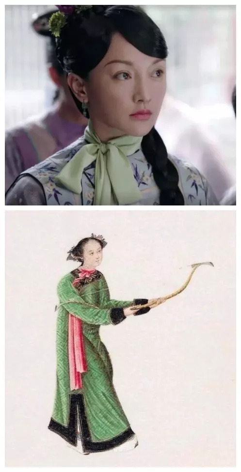 这条饱受争议的丝巾,有好心的网友也翻出曾经清朝服饰的画册,确实是这么穿