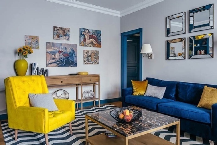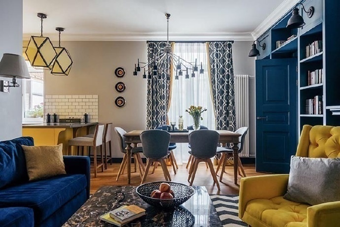 齐家网> 齐家装修论坛> 匠屋> 当含蓄沉静的蓝色相遇明艳跃动的黄色