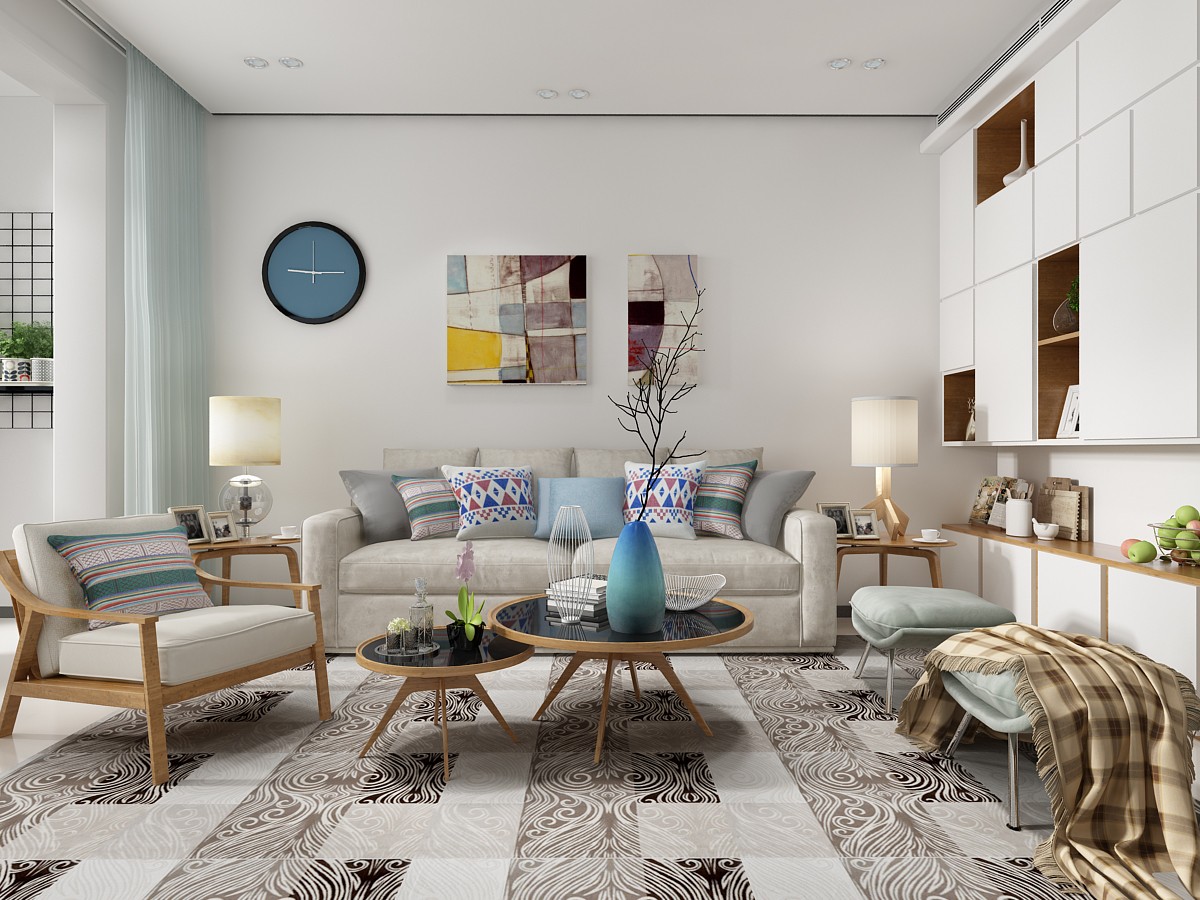 设计理念:设计理念: 墙面是白色的,瓷砖是浅色的,家具是中性的黑白灰或原木色,这样看过去是不是会显得有些单调枯燥,这时,布艺登上场了,因此,北欧风格的布艺家纺的色彩一般就会比较鲜亮一些,各种颜色都是不错的选择,但是,记住一定要适度,亮而不砸不乱。
