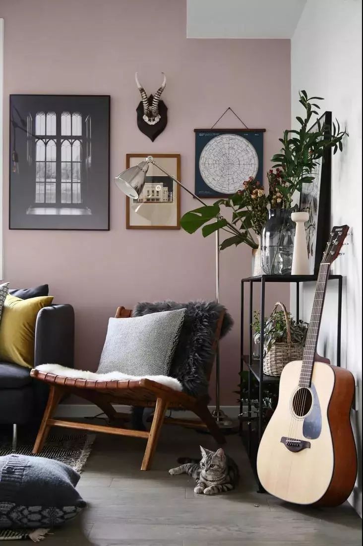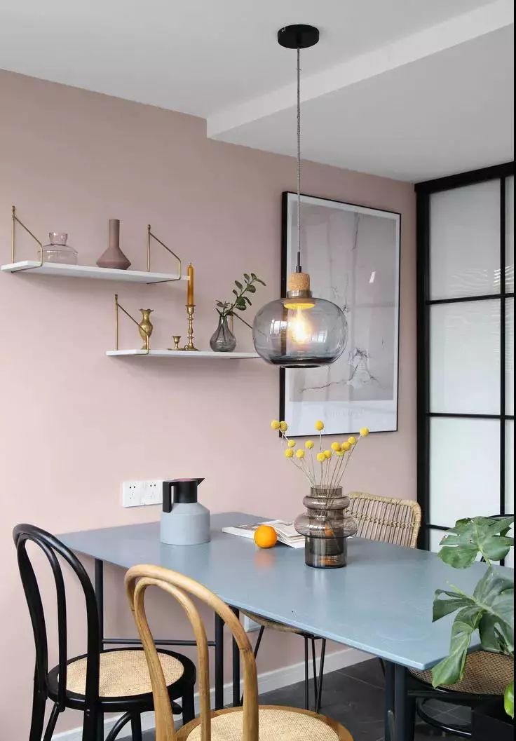 这种色调的饱和度很低,乍看之下有种脏脏的感觉,但是大面积地铺陈于家居空间,与纯白、雾霾蓝、高级黑等养眼色调搭配起来,反而比甜腻的少女粉更有质感,让空间气质瞬间变得柔和优雅起来