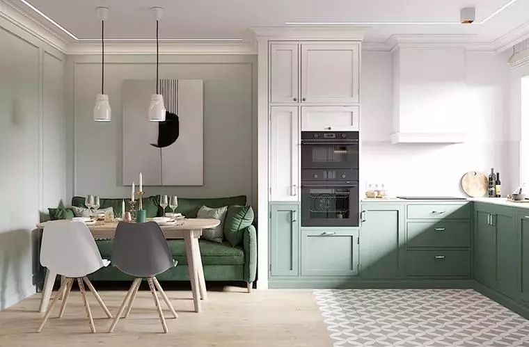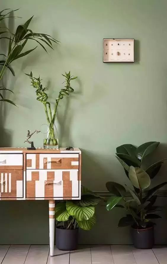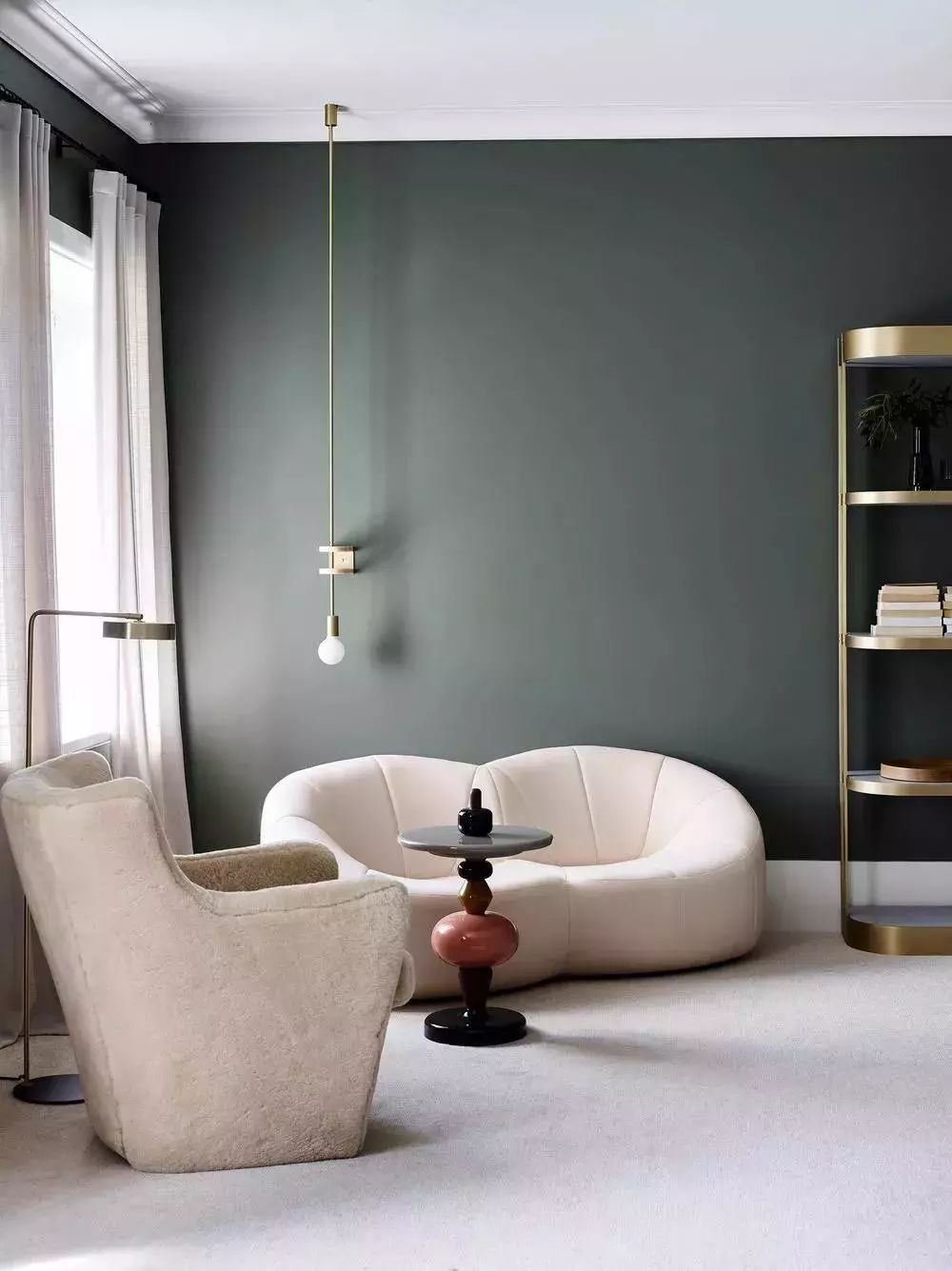 灰豆绿可以作为大量的墙面色彩使用,也可以用窗帘、椅子、沙发等软装作为色彩载体进行局部性点缀,它不仅可以点亮空间,还能带来赏心悦目的感觉,富有治愈气息,也许你看到它第一眼就会深深沦陷