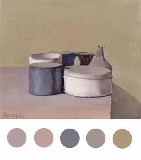 从莫兰迪的画作中,我们就不难看出他的色彩风格柔和细腻、饱和度低