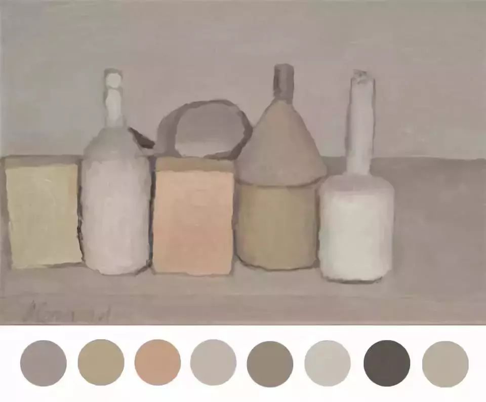 “莫兰迪色调”是以意大利画家乔治·莫兰迪的名字命名,他善于以瓶瓶罐罐等静物或风景画为创作对象,他的绘画几乎不用鲜亮的颜色,只是用些看似灰暗的中间色调来表现物象,一切不张不扬,静静地释放着最朴实的震撼力和直达内心的快乐与优雅