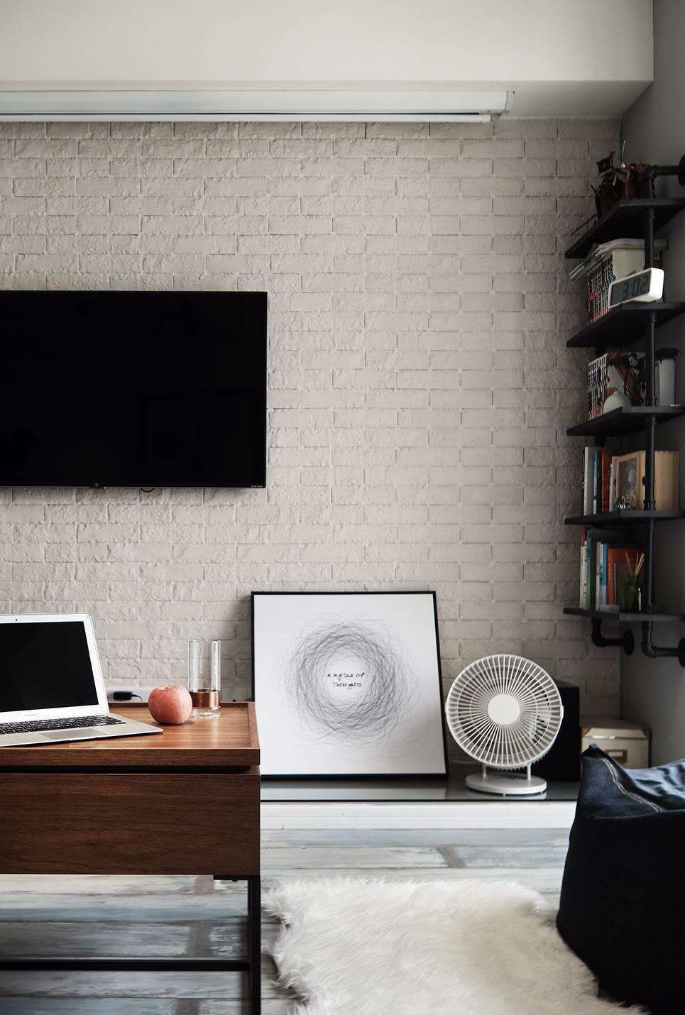 客厅电视背景墙采用的是文化砖作为背景,简约大方