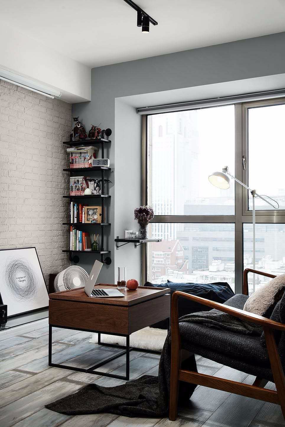 在靠窗的地方安装了铁艺的隔板,主要用于放置朋友平时经常阅读的书籍和一些小物件,与客厅整体风格相搭,同时也增加了客厅的储物空间