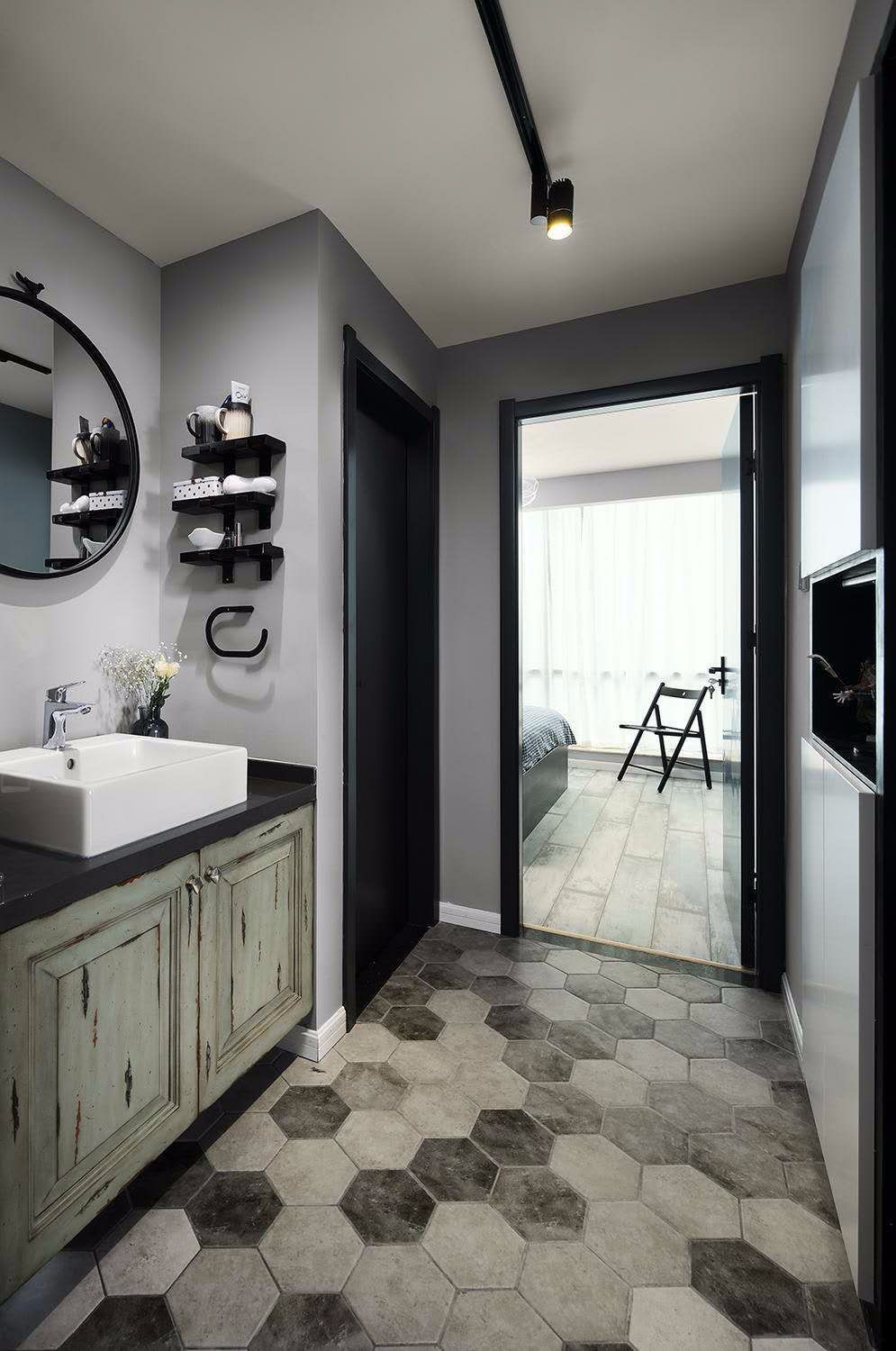 为了保证卫生间的干湿分离,特意将洗手台盆移了出来,而且地面选择的是与玄关一样的六角砖,与之相呼应,与整个空间的色调也是相互呼应