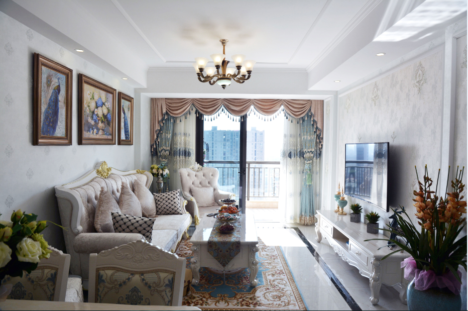 设计老师根据我比较喜欢的欧式风格为出发点,为其打造了一套居室色彩主调为米白色,采用简单欧式独有的家具搭配新居。