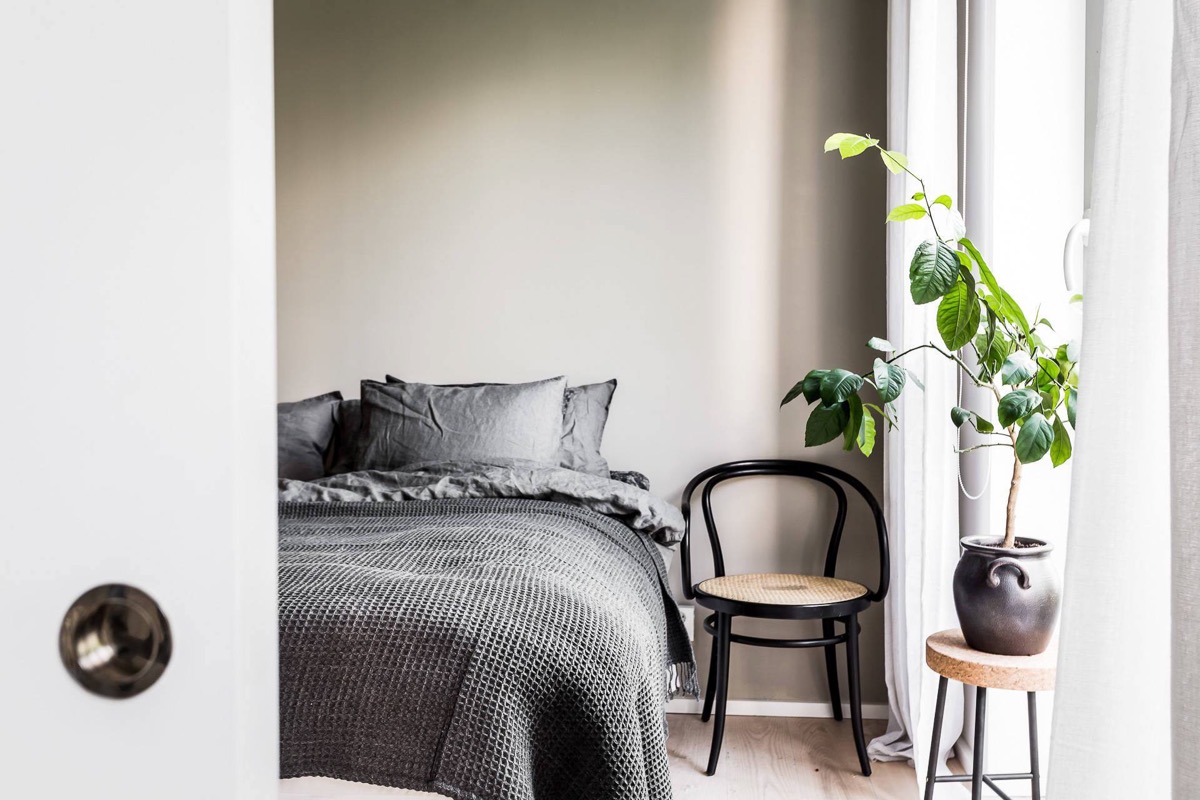 即使是以灰色和白色为主色调的卧室,在充满光影的情况下,也显得很温暖哦!