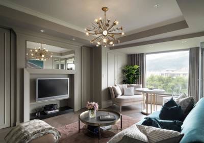 家的形式有许多种,其中包含了度假村-25平饭店式管理的温泉住宅,设计师走访美国洛杉矶棕榈泉海滩的绝佳美景为灵感,比照高档度假村的规格,营造出时尚高端的生活场景。