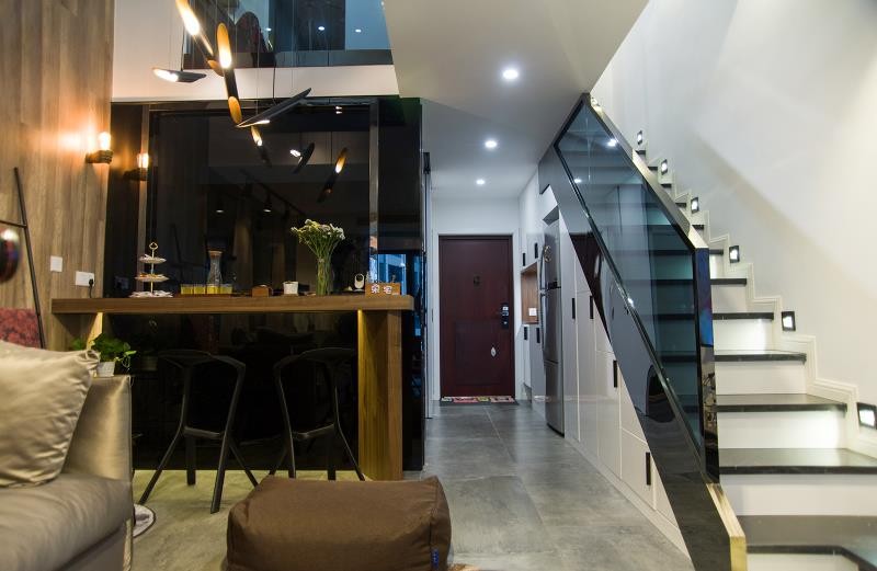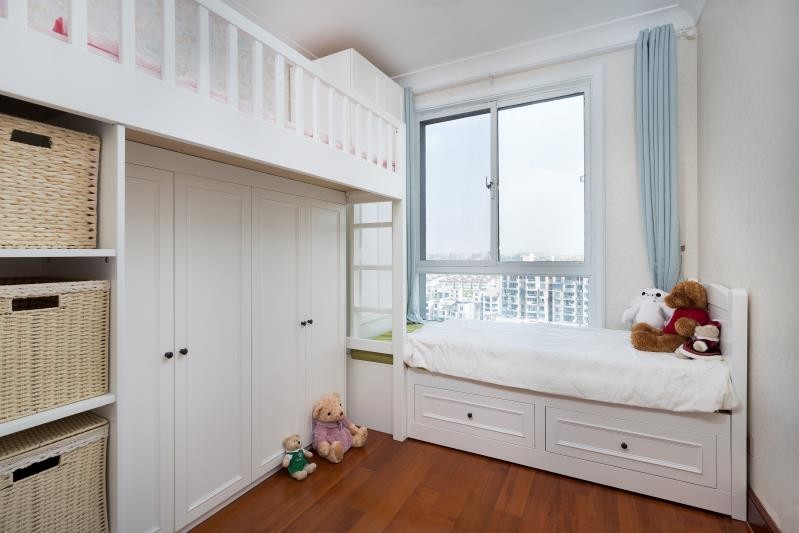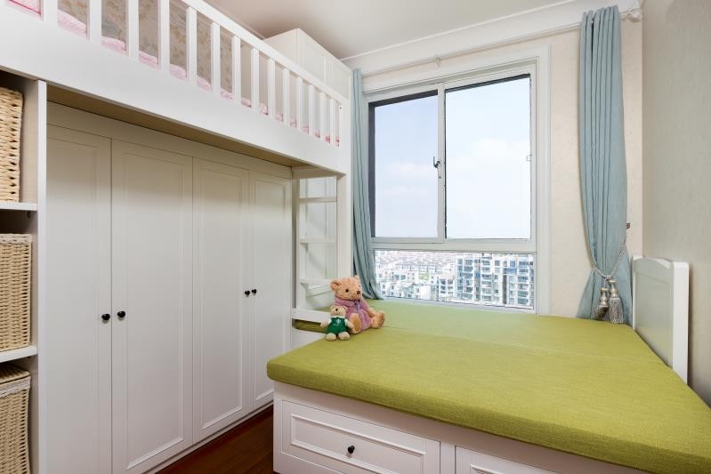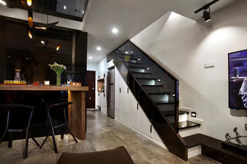 榻榻米床多功能空间,强大的收纳功能。楼梯下 的空间设计成楼梯柜,也可让储物空间加大。