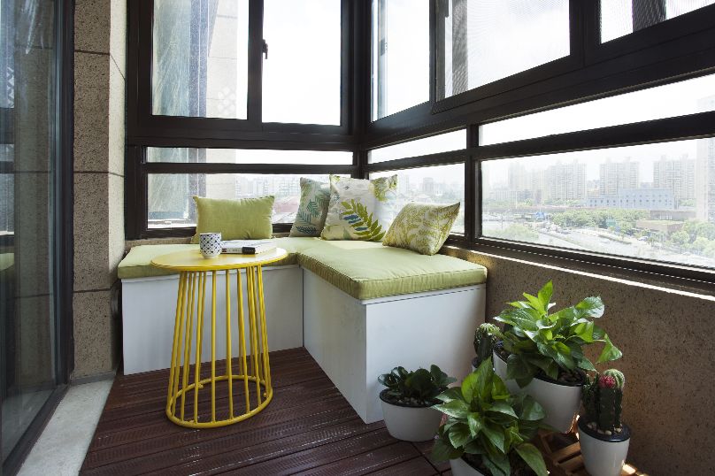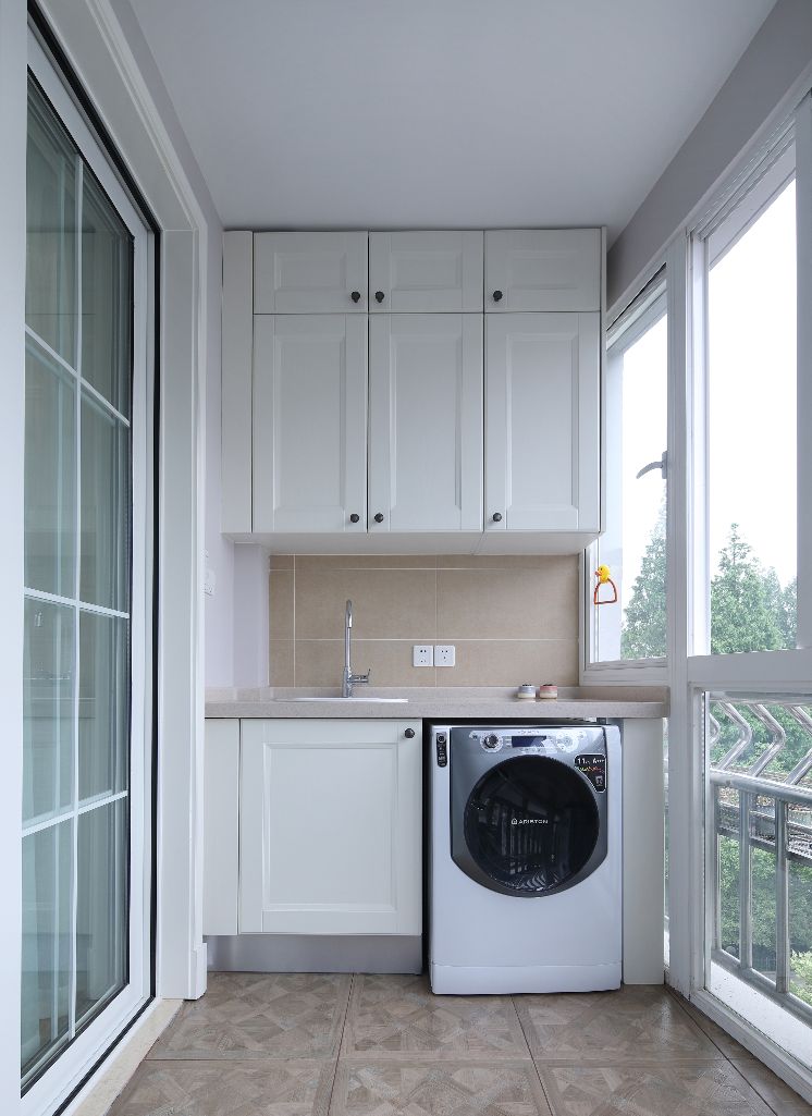 阳台角落可以做柜子可以放洗衣机做晾晒空间。